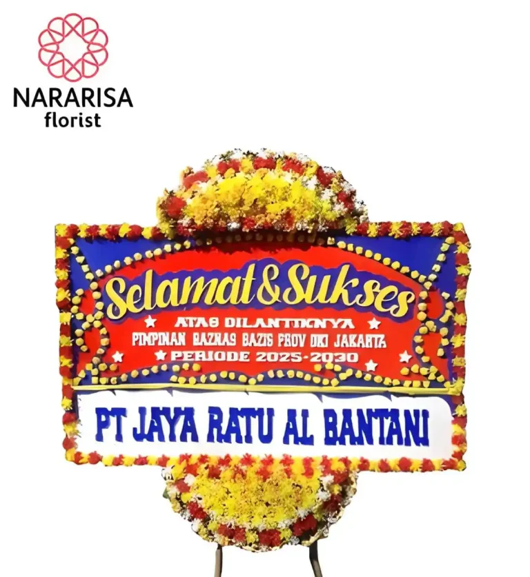 Tunjukkan rasa bangga dan dukungan anda dengan bunga papan ucapan selamat dari Nararisa Florist. Cocok untuk acara pembukaan bisnis, ulang tahun, wisuda, pelantikan atau perayaan prestasi. Rangkaian bunga cerah kami dirancang untuk menyampaikan semangat positif dan doa sukses bagi penerimanya.
