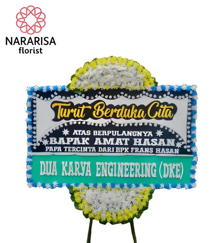 Sampaikan rasa belasungkawa dengan penuh hormat melalui bunga papan duka cita dari Nararisa Florist. Setiap rangkaian kami dirancang elegan, dengan kombinasi warna lembut yang melambangkan doa, ketulusan dan penghormatan baik keluarga yang ditinggalkan.